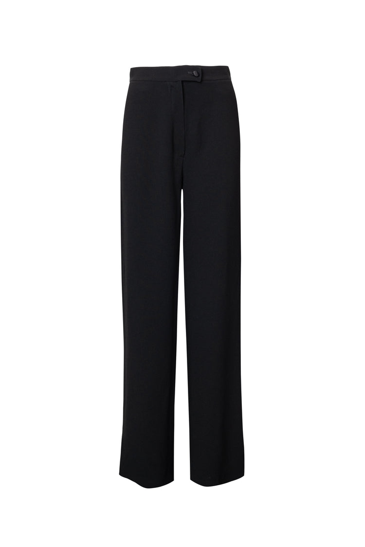 Pantalone tuxedo in crepe sable, caratterizzato da una raffinata banda laterale in raso di seta che ne esalta l’eleganza. Realizzato con materiali di alta qualità, assicura una vestibilità impeccabile e comfort prolungato, ideale per occasioni formali dove stile e tradizione si incontrano. Un capo essenziale per un look sofisticato e senza tempo.
