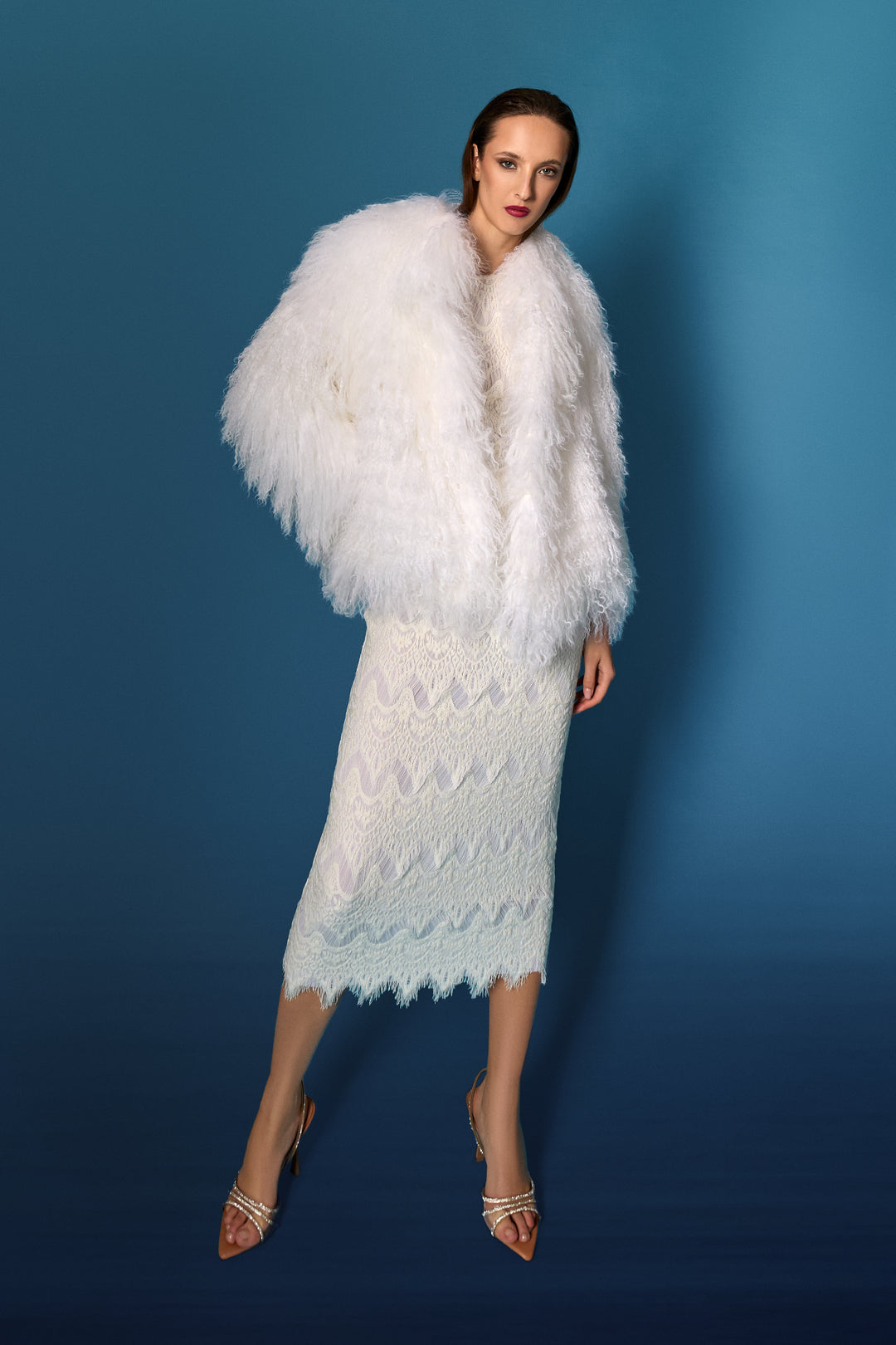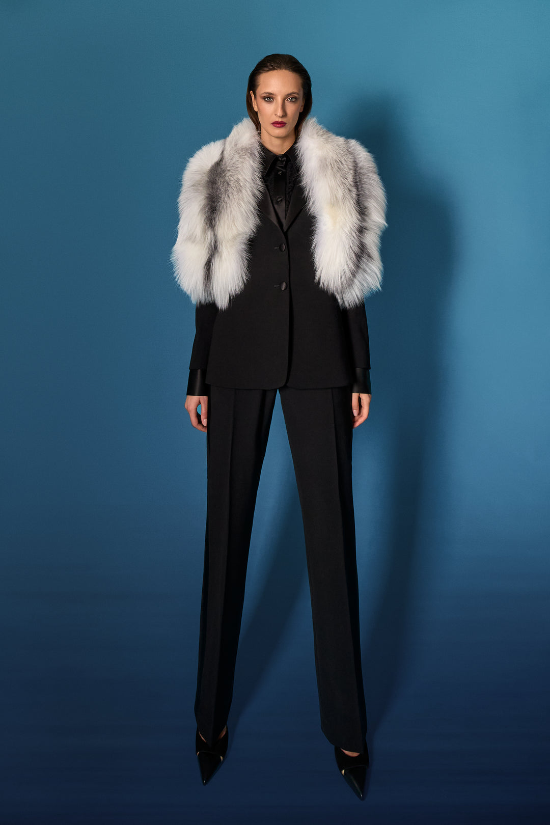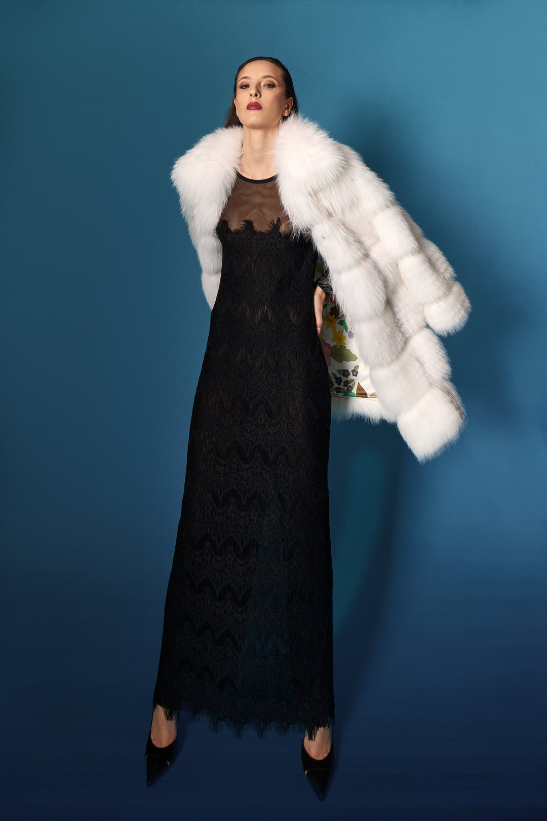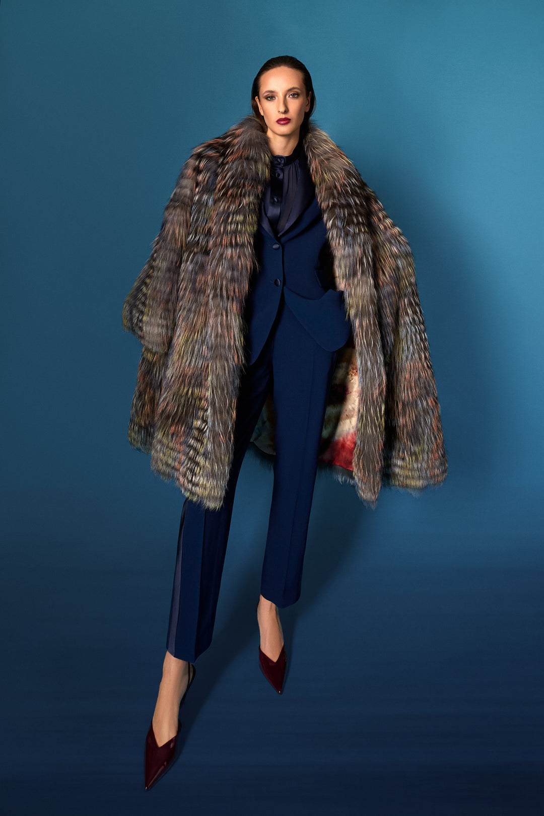 La lavorazione fur è di livello altissimo: la texture viene filettata e poi tricottata manualmente, in taluni casi sovratinta in modalità pittorica.