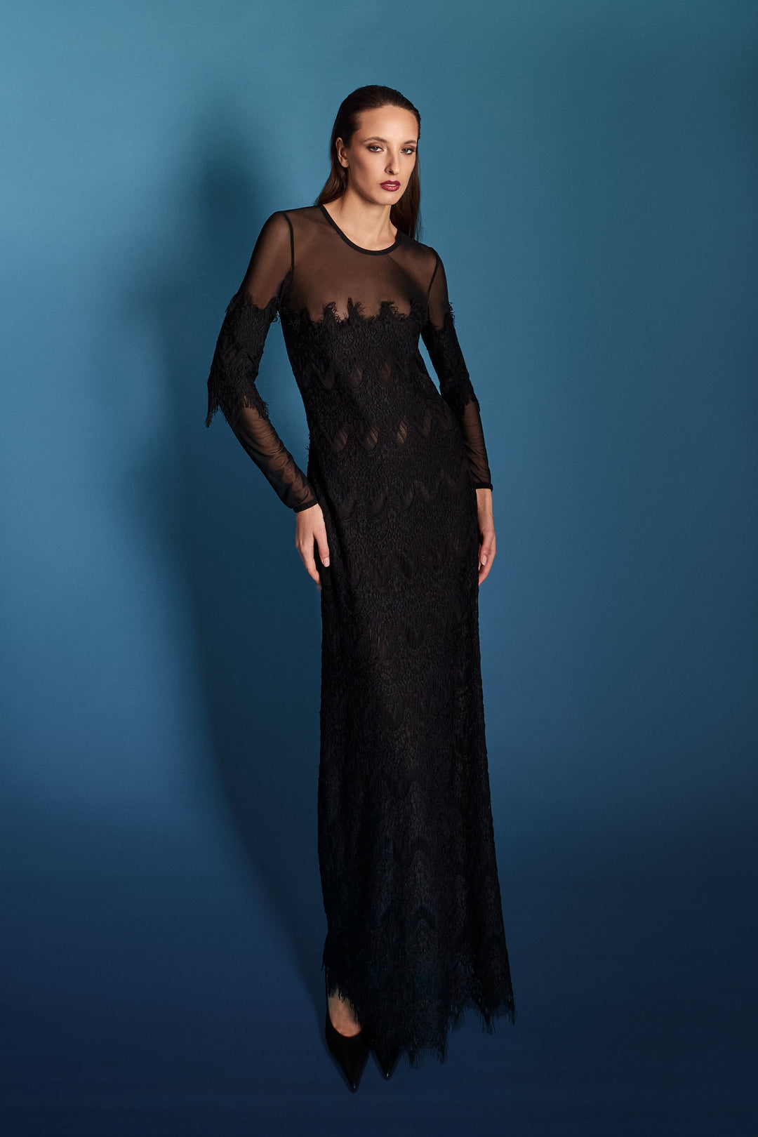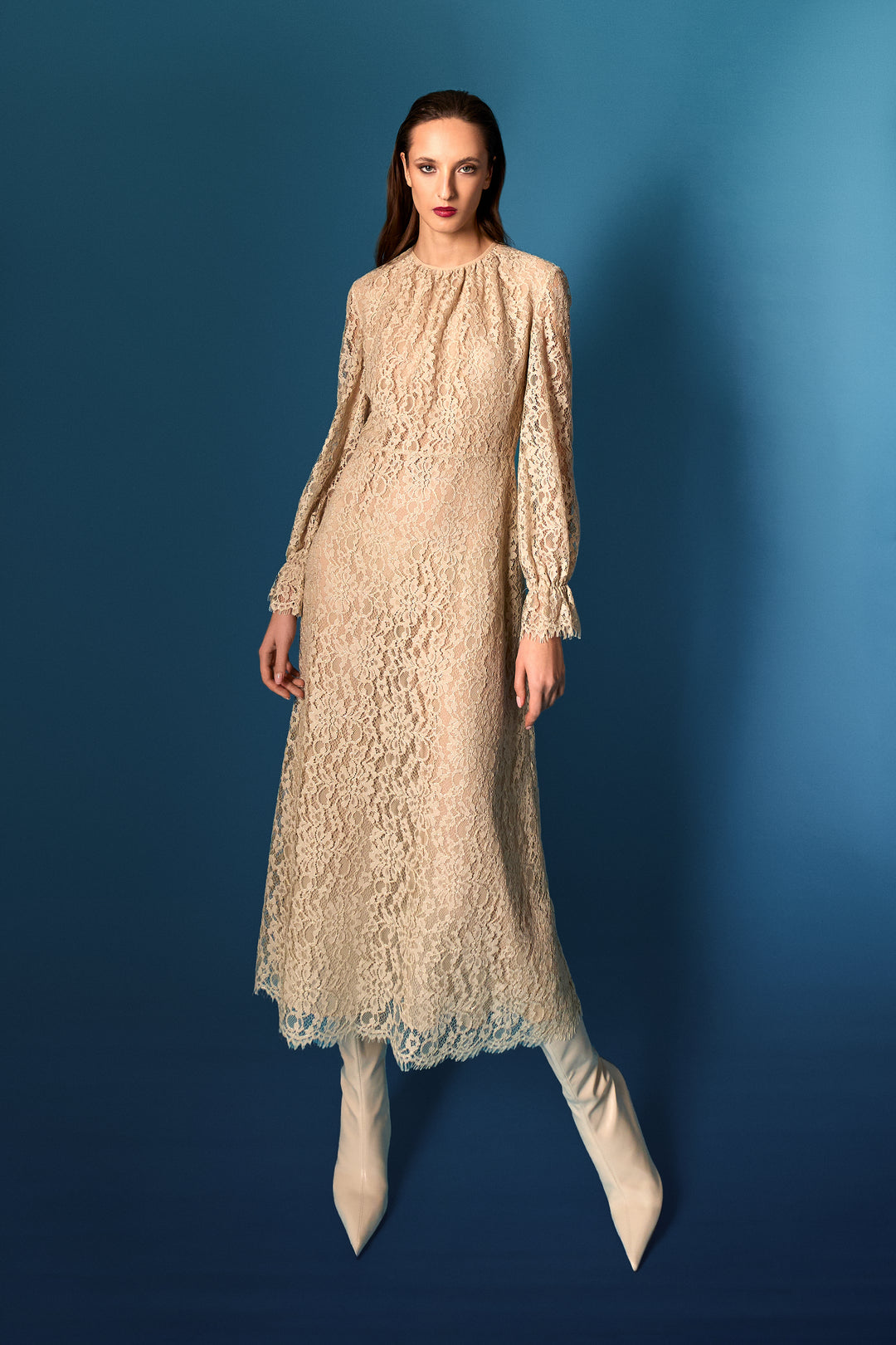 Il passe partout è l’abito in pizzo naturalmente elastico, démi longueur.
