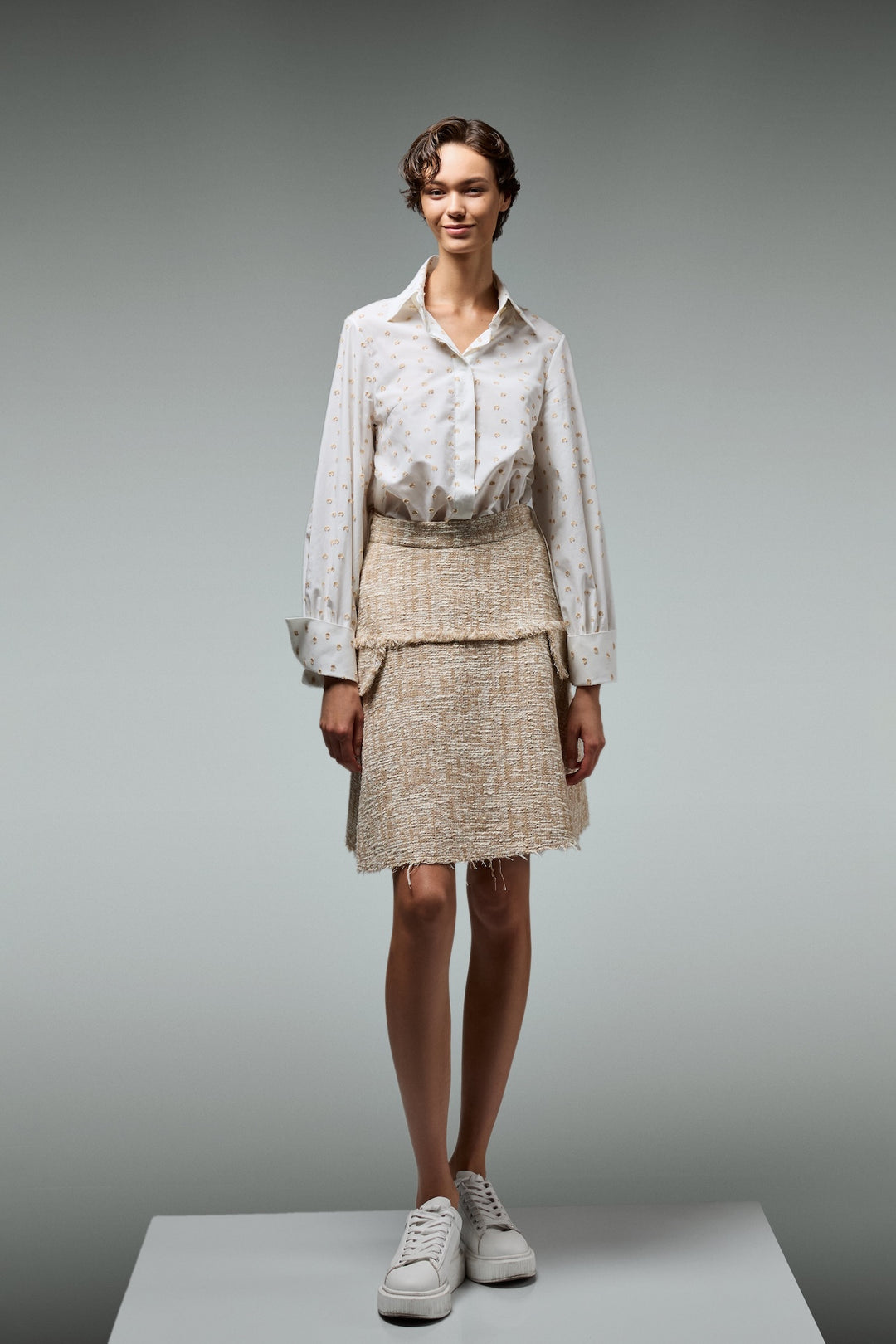 Le camicie hanno polsi infiniti, con piccoli bottoni rivestiti di seta.