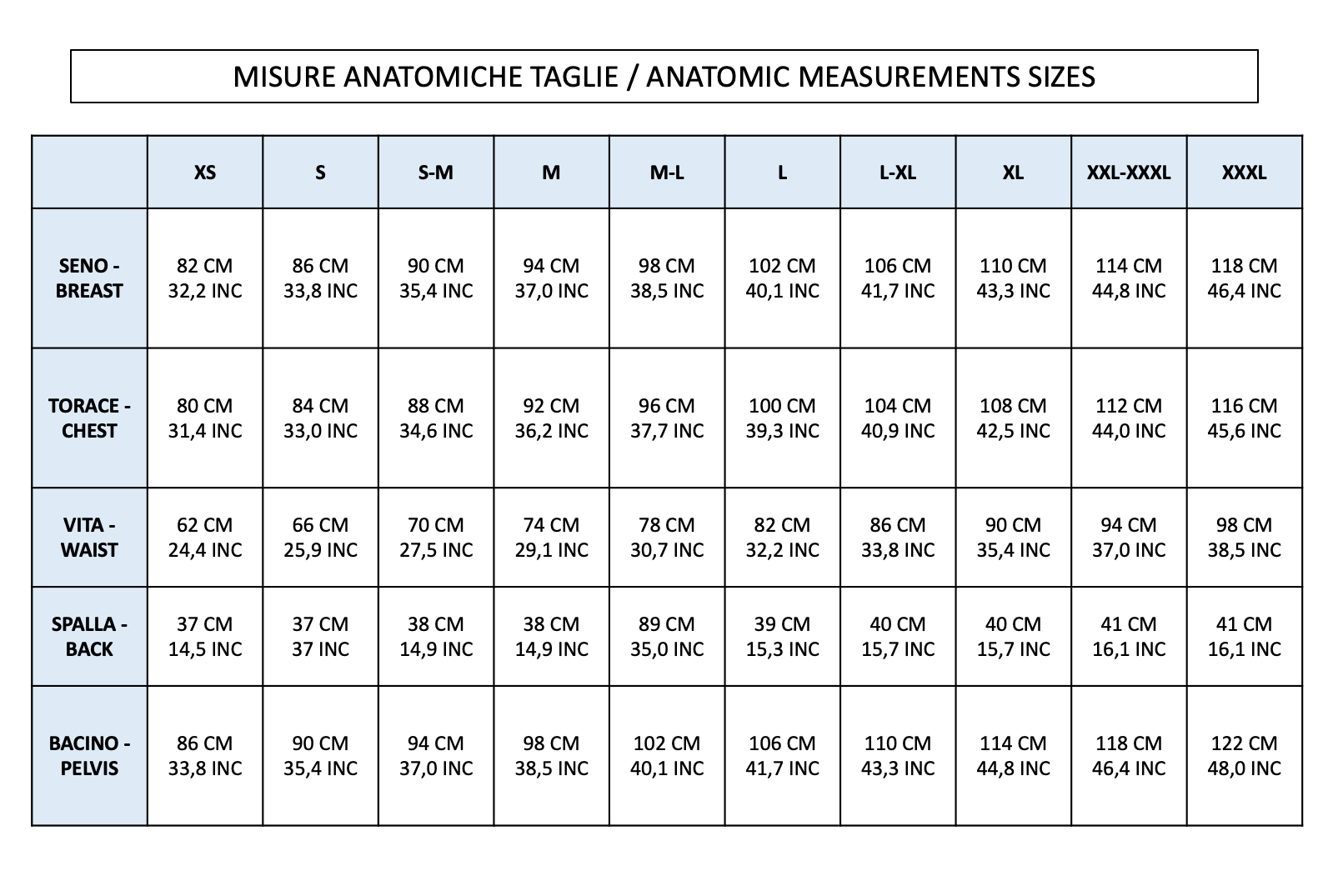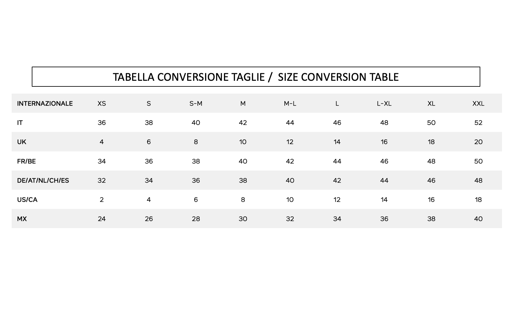 Questa è una tabella di conversione indicativa per aiutarti a trovare la taglia più adatta a te.