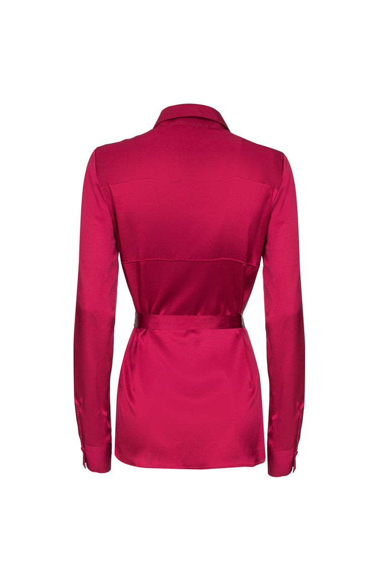 Descrizione:Camicia in seta satin con bavero in contrasto, cintura in vita